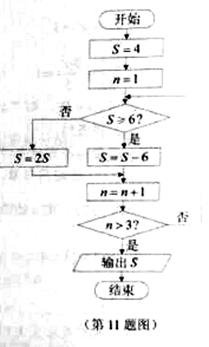 11.执行右边的程序框图,若输入n的值为3,则输出的S的值为_______.