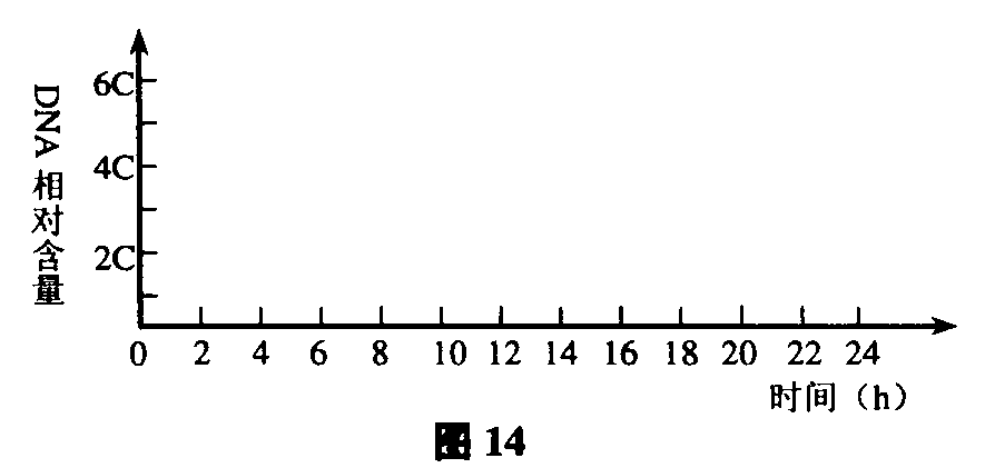 (1)在图14中绘出该种细胞的细胞周期 曲线图并注明各期名称(假设体细胞DNA相对含量为