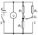 总电流增大,内电压变大,外电压变小,电压表测的是外电压,所以电压表示数变小.故A错误;设电路中的电阻R1、R2和R3的阻值为R,当电键打在1时,R2两端的电压U2=