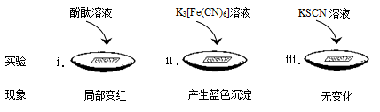 ①K3[Fe(CN)6]溶液与二价铁离子反应生成蓝色沉淀;