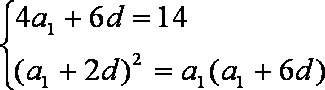己知各项均不相等的等差数列{an}的前四项和S4=14,且a1,a3,a7成等比数列。