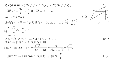 (2)若AE=AB,求CE与平面ADE所成角的正弦值。
