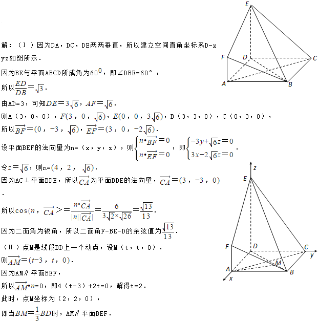 (Ⅱ)求平面ADF与平面CDFE所成的二面角的余弦值.