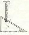 20.如图所示,固定在倾斜面光滑杆上套有一个质量为m的圆环,圆环距水平面的距离为h,圆环与竖直放置的轻质弹簧一端相连,弹簧的另一端固定在天花板上的A点,弹簧处于原长,让圆环沿杆滑下,滑到杆的底端时速度为零,则在圆环下滑过程中 ( )