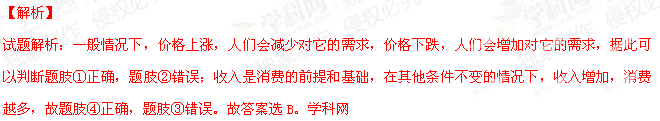 ④随着收入增加,A商品需求量的增加幅度递减