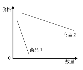 (1)假设劳动密集型商品国外需求量对出口价格变化的敏感程度较弱,资本技术密集型商品的敏感程度较强,其他条件不变。根据材料一,请分别计算从2013 年到2014 年,当商品1、商品2 出口价格变动1%所引起的各自需求量变化的百分比;依据材料二,结合上述假设及计算结果,请分别判断商品1 和商品2 可能的类别;在图4 中用直线分别画出它们的需求曲线示意图。 (请用2B 铅笔在答题卡上清楚画图)(6 分)