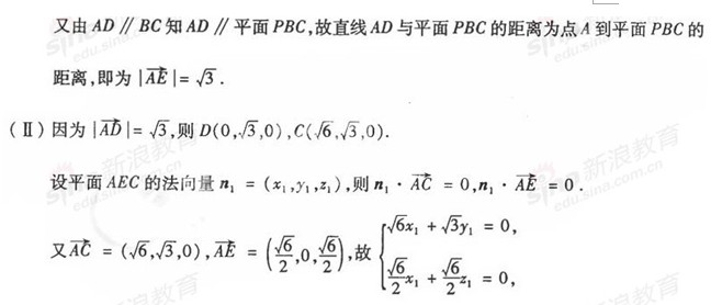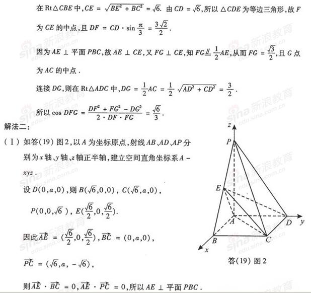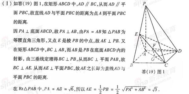 如题(19)图,四棱锥P-ABCD中,底面ABCD为矩形,PA