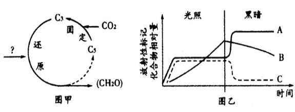 (2)图乙曲线A、B、C分别表示图甲中化合物_______、_______和_______相对量的变化。