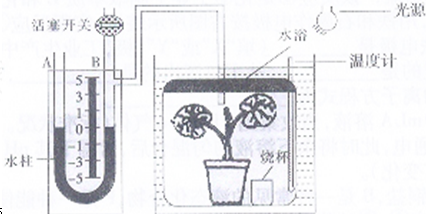 (1)为了探究温度对光合作用的影响,首先应在上图装置的烧杯内加入( )溶液,然后再打开该装置的活塞开关,使U形管两侧液面如图所示,关闭活塞,这一操作的目的是( )