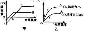 33.下图甲表示自然条件下A、B两种植物光合效率随光照强度改变的变化曲线,图乙表示将A植物放在不同CO2浓度环境条件下,A植物光合效率受光强度影响的变化曲线。请分析回答: