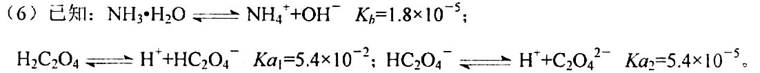 (6)NH4+ 的水解平衡常数Kh=10-14/1.8×10-5 =5.55×10-10 ;C2O42-的水解平衡常数Kh=10-14/5.4×10-5 =1.85×10-10 ;因此该流程中所用(NH4)2C2O4溶液的pH<7;