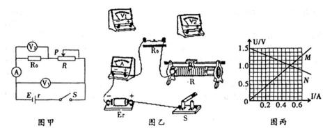 (3)实验中移动滑动变阻器触头,读出电压表Vl和V2的多组数据U1、U2,描绘U1—U2图象如图丙所示.图中直线斜率为k与横轴的截距为a,则两节干电池的总电动势E=_____,总内阻r=______(用k、a 、R0表示)