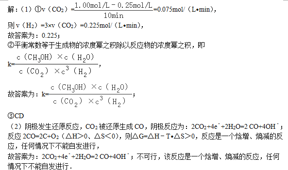 ③下列措施中能使n(CH3OH)/n(CO2)增大的是___________.