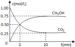 (1)目前工业上有一种方法是用CO2来生产燃料甲醇.为探究反应原理,现进行如下实验:在体积为1L的密闭容器中,充入1mol CO2和3mol H2,一定条件下发生反应:CO2(g)+3H2(g)⇌CH3OH(g)+H2O(g)△H=﹣49.0kJ/mol,测得CO2和CH3OH(g)的浓度随时间变化如图所示.