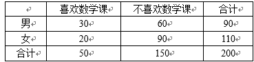 为考察高中生的性别与是否喜欢数学课程之间的关系,在我市某普通中学高中生中随机抽取200名学生,得到如下