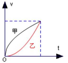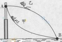 A在曲线上任取一点,作切线,设切线与水平方向成的锐角为θ,则切向力为:mgsinθ=mat,可以看出来甲的切向加速度一直减小,乙一直增大在B点 就有甲的切向加速度小于乙,当然这样地方还有很多A错