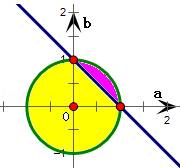 ∴ 以a为横坐标、b为纵坐标建立直角坐标系,可得所有的点(a,b)在以O为圆心,半径为1的圆及其内部,即单位圆及其内部,如图所示
