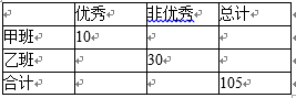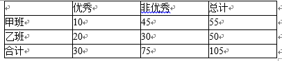 有甲乙两个班进行数学考试,按照大于等于85分为优秀,85分以下为非优秀统计成绩后,得到如下列联表。