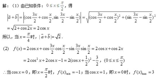 三角函数中的恒等变换应用三角函数的最值向量的模平面向量数量积的运算