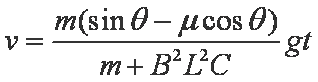 上式表明,加速度随速度增加而减小,棒作加速度减小的加速运动。无论最终是否达到匀速,当棒到达斜面底端时速度一定为最大。由动能定理可以得到棒的末速度,因此上述解法正确。 (2分)