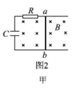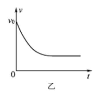 图甲中的三个装置均在水平面内且处于竖直向下的匀强磁场中,足够长的光滑导轨固定不动,图2中电容器不带电。现使导体棒ab以水平初速度v0向右运动,导体棒ab在运动过程中始终与导轨垂直,且接触良好。某同学定性画出了导体棒ab的v-t图像,如图乙所示。则他画出的是