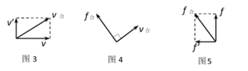 (2)小球随管向右运动的同时还沿管向上运动,其速度如图3所示。小球所受洛伦兹力f合如图4所示。将f合正交分解如图5所示。