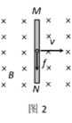 b. 如图2所示,棒向右运动时,电子具有向右的分速度,受到沿棒向下的洛伦兹力