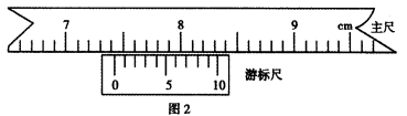 (2)在用单摆测定重力加速度实验中,用游标为20分度的卡尺测量摆球的直径,示数如图2所示,读数为__________________cm。