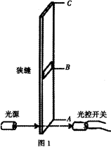 某同学使用有透光狭缝的钢条和光电计时器的装置测量重力加速度(图1)。在钢条下落过程中,钢条挡住光源发出的光时,计时器开始计时,透光时停止计时,若再次挡光,计时器将重新开始计时。实验中该同学将钢条竖直置于一定高度(下端A高于光控开关),由静止释放,测得先后两段挡光时间t1和t2。