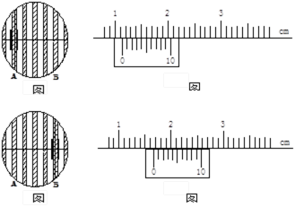 (1)在做“用双缝干涉测量光的波长”实验时,某同学调整手轮后,从测量头的目镜看去,当分划板中心刻度线对齐A条纹中心时(如图1所示),游标卡尺的示数如图2所示;接着转动手轮,当分划板中心刻度线对齐B条纹中心时(如图3所示),游标卡尺的示数如图4所示。已知双缝间距为0.5mm,从双缝到屏的距离为1m。