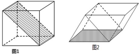 11.如图1所示的正方体的棱长为1,沿对角面(图中阴影部分)将其分割成两块,重新拼接成如图2所示的斜四棱柱,则所得的斜四棱柱的表面积是_______