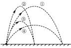 2.有A、B两小球,B的质量为A的两倍。现将它们以相同速率沿同一方向抛出,不计空气阻力。图中①为A的运动轨迹,则B的运动轨迹是( )