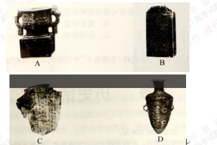 2. 从甲骨的刻符、青铜器的铭文,到笔画详备的楷书,缀连成一幅生动的文字史画卷。 观察下侧图片,可以得出的准确认识是( )