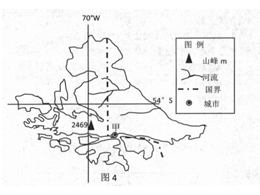 图4所示岛屿面积约48700 km2,分属两个国家,东部国家的该地首府是个只有3万人口的城市,但是人口的章节变化较大。岛屿西部年降水量高迭2000~3000毫米;东部为降水较少,不足500毫米。据此读图,回答8一11题。