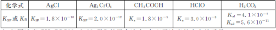 A.次氯酸根离子的水解程度大于醋酸根离子,所以c(CH3COO-)>c(ClO-);B.弱电解质的电离平衡常数越大,其酸性越强,所以次氯酸比碳酸氢根离子的酸性强;C.混合溶液中pH=pKa+lg[(弱酸盐)/(弱酸) D.混合溶液中生成氯化银需要的c(Ag+)=[Ksp(AgCl)]/c(Cl-),生成Ag2CrO4需要的c(Ag+)=[Ksp(AgCl)/c(Cl-)]1/2;
