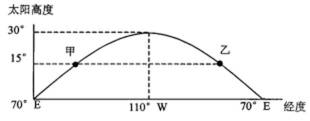 15.读某日北半球某纬线上不同经度的太阳高度角图