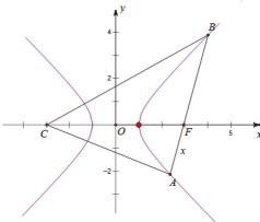 9. 等腰直角三角形ABC中,A=90°,A,B在双曲线E的同一支上,且线段AB通过双曲线的一个焦点,C为双曲线E的另一个焦点,则该双曲线的离心率为