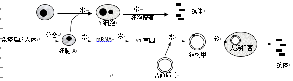 (1)、在获取抗体之前,需要向健康人体注射特定抗原(如乙肝疫苗),并且每隔一周重复注射一次。免疫学称细胞A为 ,该细胞在人体主要介导 免疫。