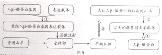 25.图9为培育转基因山羊生产人β-酪蛋白的流程图