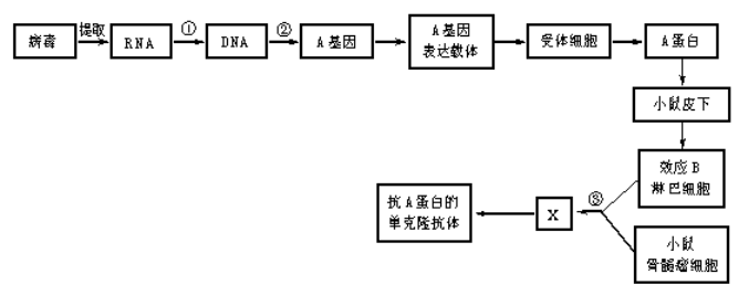人类在预防与诊疗传染病的过程中,经常使用疫苗和抗体。已知某种传染病的病原体为RNA病毒,该病毒表面的A蛋白质为主要抗原,其疫苗生产和抗体制备的流程如下图所示,请分析回答: