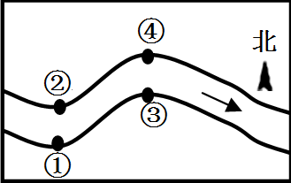 10.流水地貌是由流水塑造而形成的地表形态。如果在图示的①、②、③、④四处进行码头选址,比较合适的是( )