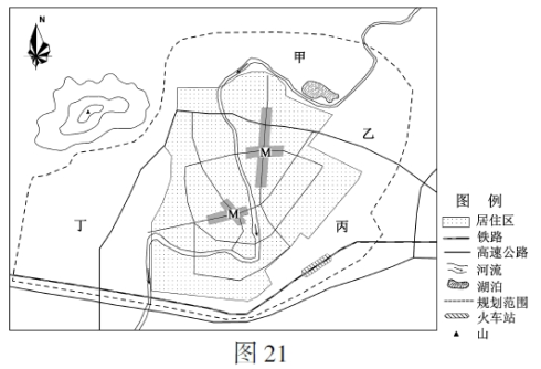 图21为我国某城市现状及规划范围图。读图回答下列问题。