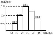 对一批产品的长度(单位: mm)进行抽样检测, 下图喂检测结果的频率分布直方图. 根据标准, 产品长度在区间[20,25)上的为一等品, 在区间[15,20)和区间[25,30)上的为二等品, 在区间[10,15)和[30,35)上的为三等品. 用频率估计概率, 现从该批产品中随机抽取一件, 则其为二等品的概率为()