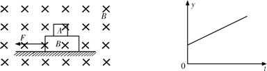 18. 左图所示为足够大空间内存在水平方向的匀强磁场,在磁场中A、B两物块叠在一起置于光滑水平面上,物块A带正电,物块B不带电且表面绝缘,A、B接触面粗糙。自t =0时刻起用水平恒力F 作用在物块B上,由静止开始做匀加速直线运动。右图图象的横轴表示时间,则纵轴