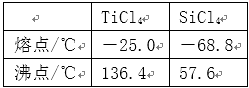 (6)右表信息可以看出,SiCl4,TiCl4两者的沸点相差较大,要精制含少量SiCl4杂质的TiCl4可用蒸馏(或分馏)等方法。