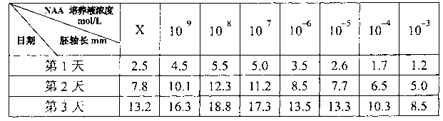 ①取8个培养皿编号,底部铺3〜4层纱布,分别加入浓度为X、1O-9. 1O-8, 1O-7、1O-6, 1O-5 1O-4 1O-3 mol/L的等量NAA培养液;
