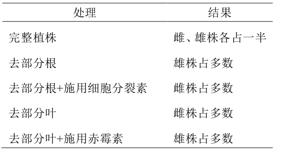 3.不同处理对某植物性别分化的影响如表所示, 下列叙述正确的是 ( )