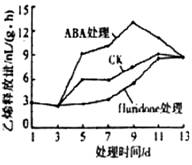 4.用外源脱落酸(ABA)及其合成抑制剂(fluricbne)分别处理采摘后的番茄,番茄的乙烯释放量变化如图所示 (CK为对照处理),下列有关分析正确的是( )