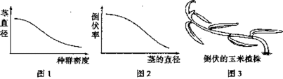5.玉米植株的高度达到1.5m以上时,遇到大风雨天气,很容易造成倒伏。某玉米品种种群密度、茎直径、倒伏率之间的关系如图1、图2所示,玉米倒伏后的状况如图3所示。下列有关说法不正确的是( )