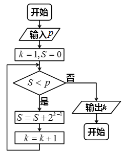 执行如图所示的程序框图,若输出的k=5,则输入的整数p的最大值为